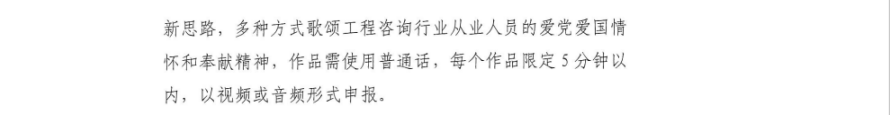 (一)省工程咨询行业协会初选后向中国工程咨询协会推荐5个作品参与全国评选。